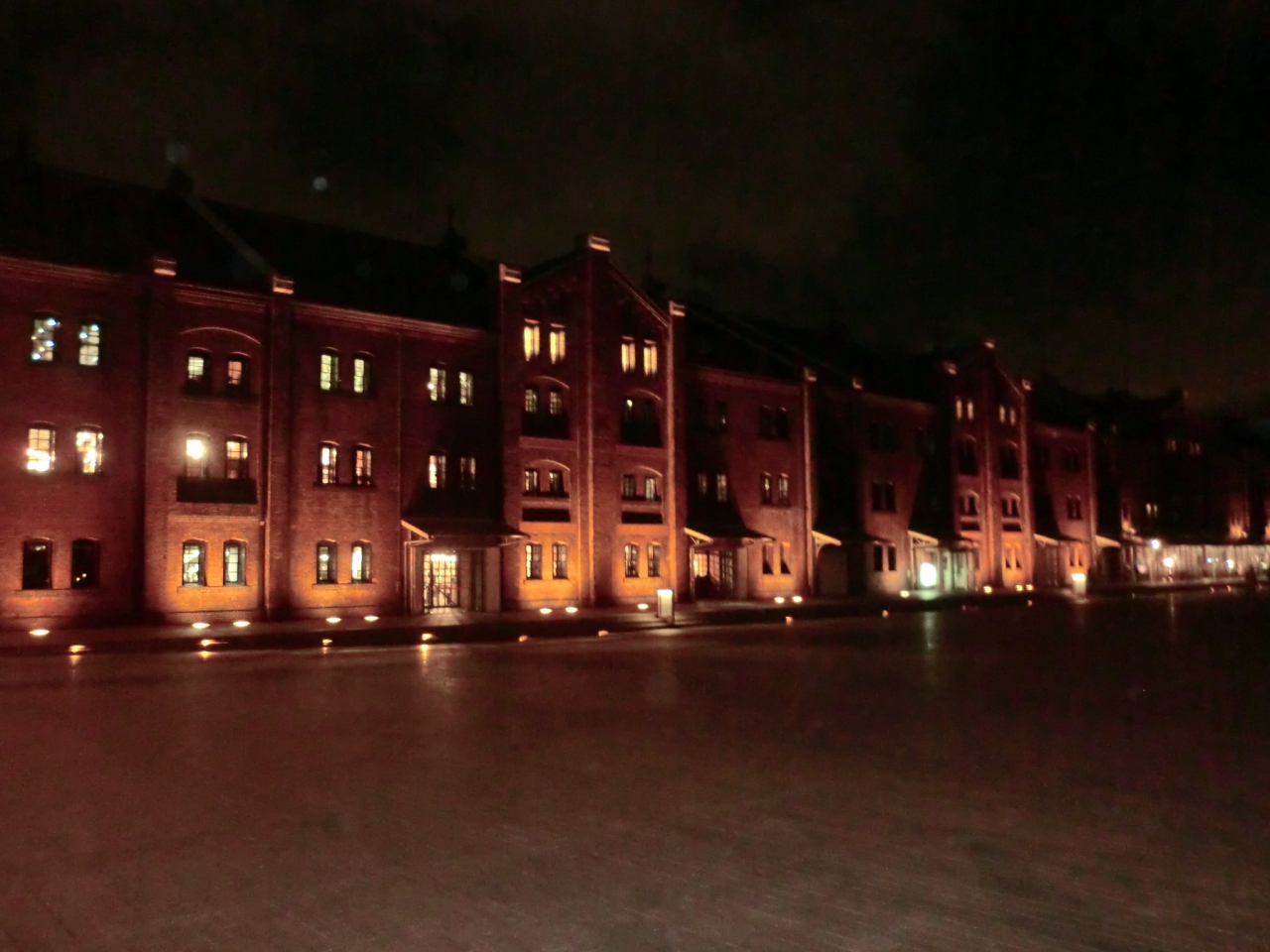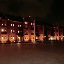 赤レンガの周りだけがライトアップされて明るいのですが、そのほかの周りは結構薄暗い感じがして少しびっくりして、「え、ここ?」という感じでした。