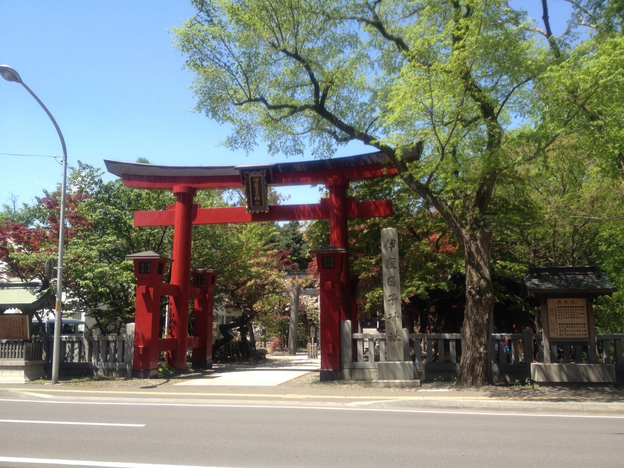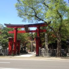 地下鉄南北線幌平橋駅から北に数分の場所あり、朱塗りの大鳥居が通りに面していて目立ちます。