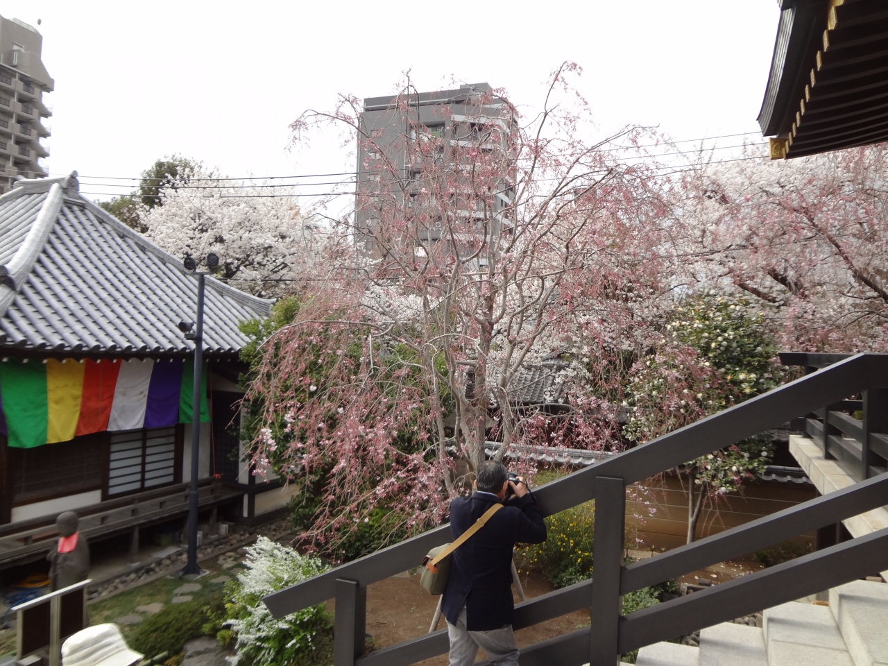 小さなお寺の中は、枝垂桜が満開で見事な眺めでした。どの季節に行っても、四季折々の花が楽しめるお寺なのですが、枝垂桜だけは別格で、本当に綺麗です。板橋の景観100選にも選ばれている観光スポットです。本蓮沼駅からすぐ近くなのでアクセスも良いですし、入場も無料です。