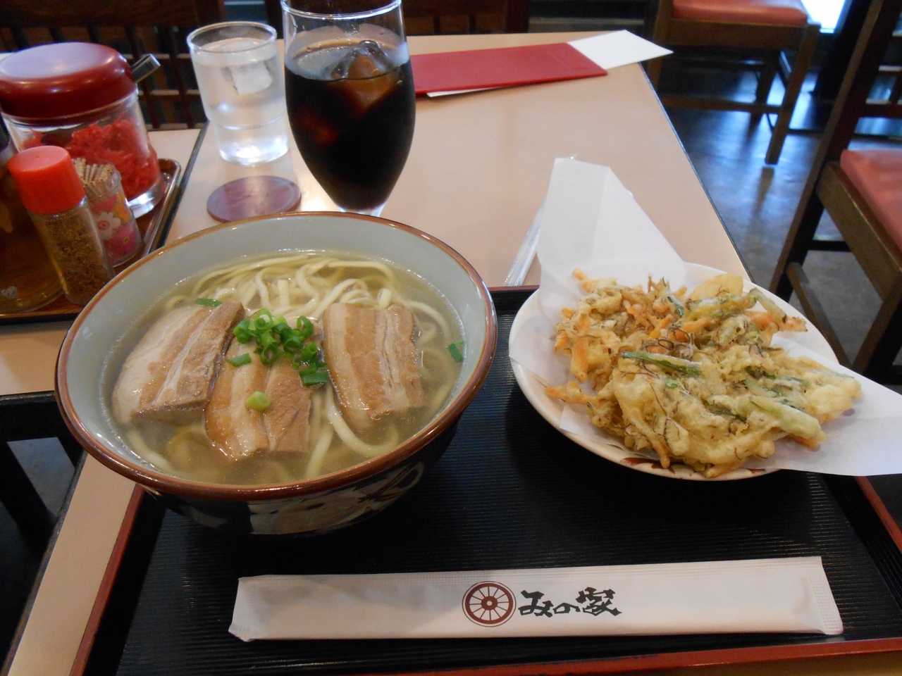 *沖縄そばを堪能し、揚げたてもずく天ぷらも絶品。