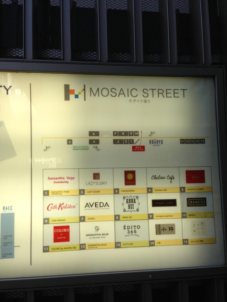 モザイク通りは小田急線新宿駅西口と南口をむすぶショッピングができる通りです。
