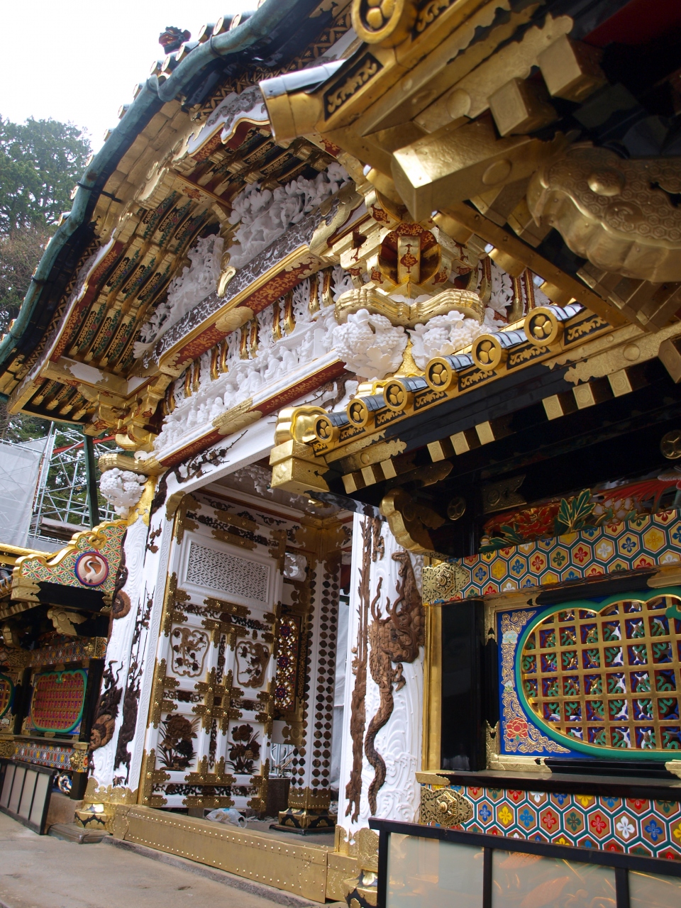 きらびやかな門で、白と金色が目を惹く豪華な造りです