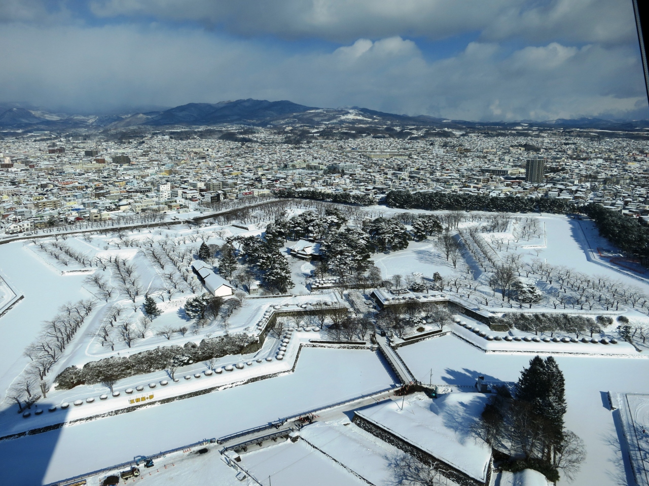 五稜郭に訪れたら、まずは五稜郭タワーに行ってみましょう。展望室からは五稜郭が綺麗に見えます。上から五稜郭を見れる場所はここしかありません。冬に行きましたが、雪化粧の五稜郭は最高に綺麗でした♪桜の時期の五稜郭も綺麗らしいので是非次回は春に行ってみたいです!