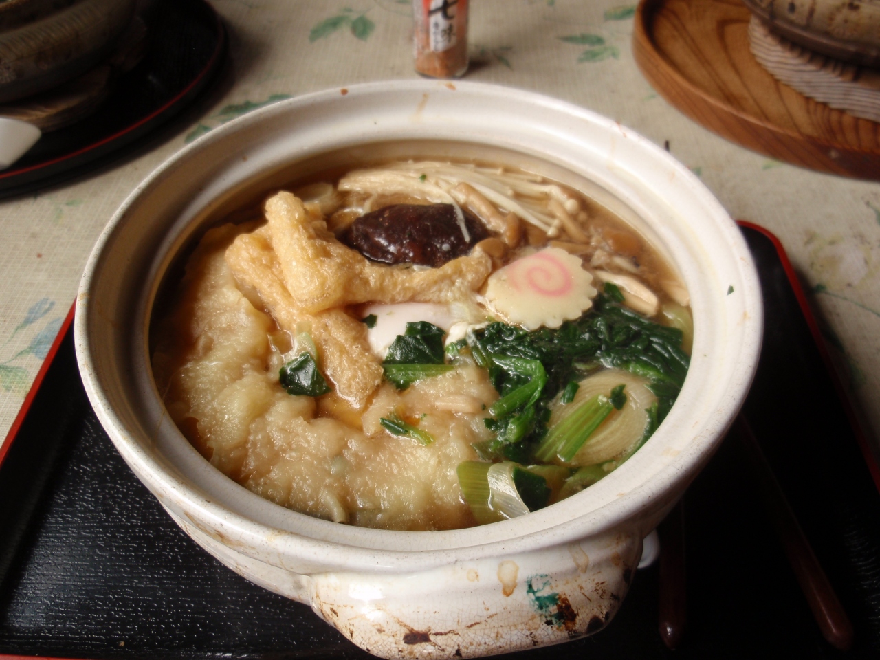 山頂の山小屋の鍋焼きうどんが有名らしく、登山客が並んで食べていました。