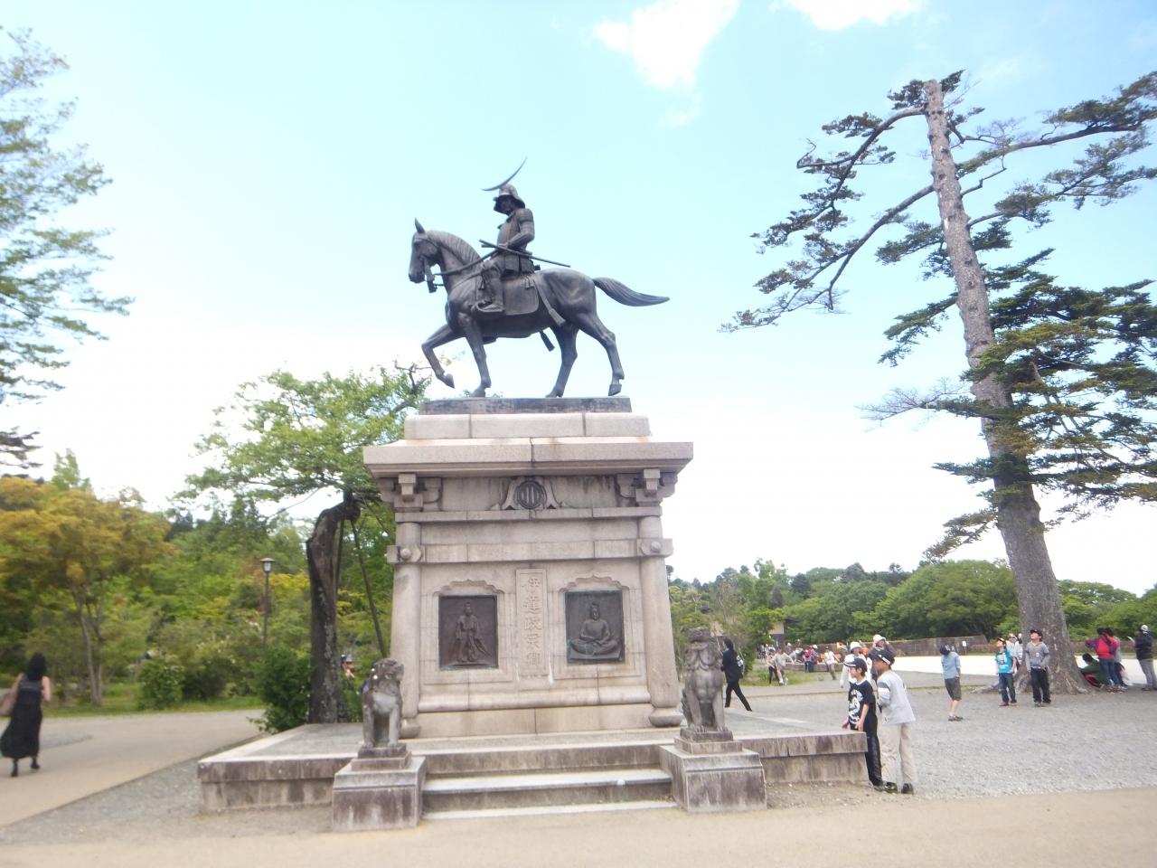 青葉城址には,伊達政宗公の騎馬像があります。