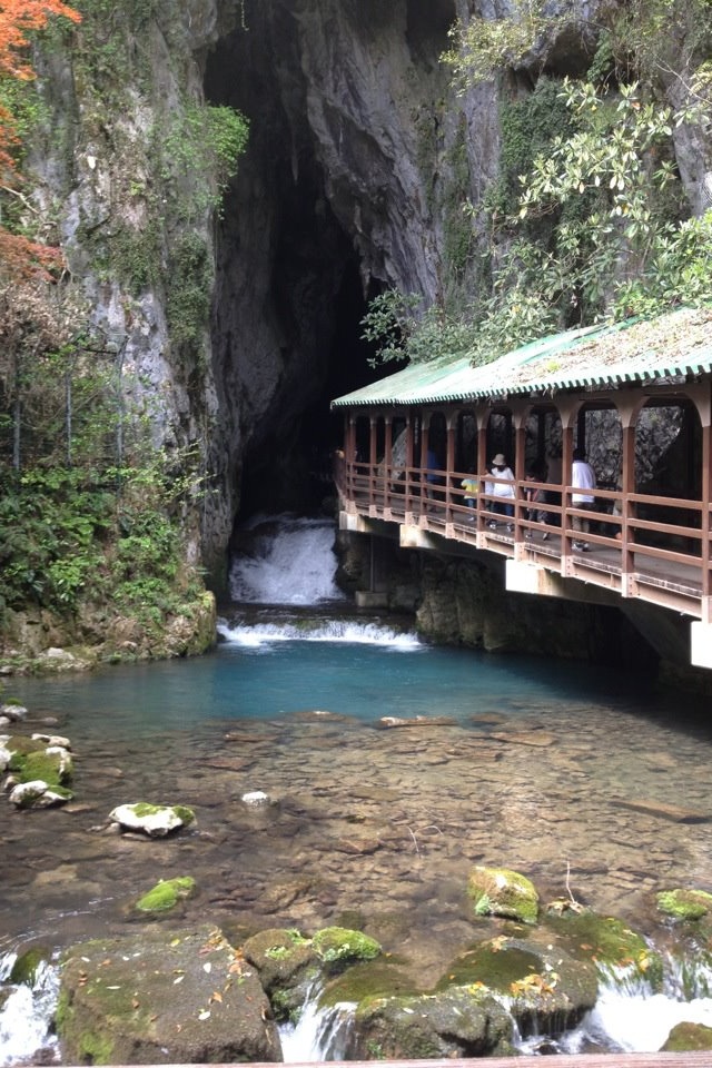 ずっと憧れていた秋芳洞へ行ってきました。まずは入口から驚きます。巨大な岩の裂け目があり、そこからは水が流れ出しているのですが、そこへかけられた橋を渡って入って行くのです。まるで神話のようだと思いました。中へ入ると暗いですが足元は問題なく見える程度です。ただ、小さい子どもさんは怖がっている子もいました。中に入ってすぐ、200円前後の追加料金を払うと岩に登れるというオプションがありましたのでやってみました。岩はかなり滑るので、足元にはじゅうぶん気をつけたほうが良いです。さて、肝心の中身ですが、入口でも驚きましたが中は驚きの連続です。ありとあらゆる奇妙な形をした鍾乳洞、たいへん大きな空間、これらがすべて自然に形作られたものだとは、まさに神秘的としか言いようがありません。洞窟自体の規模はたいへん大きいですが、感動と驚きで飽きずに見回ることができました。