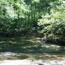 川は底が見えるくらいの透明度。緑の木々とのコントラストがとてもきれいでした。