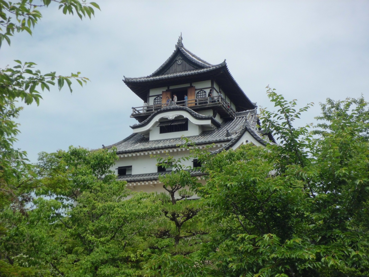 午前中なら第一駐車場に停められそう。駐車場は一日500円なので、そのまま付近の観光をしても大丈夫です。登り口は、第一駐車場から すぐです。石段を少し登ると天守閣入り口。日本最古の天守閣ということで、歴史を感じさせる風格があります。建物内は、はしごのように急な階段ばかり。最上階へは、登りと下りを譲り合う必要があります。最上階からの展望も素晴らしく、市内が一望できます。