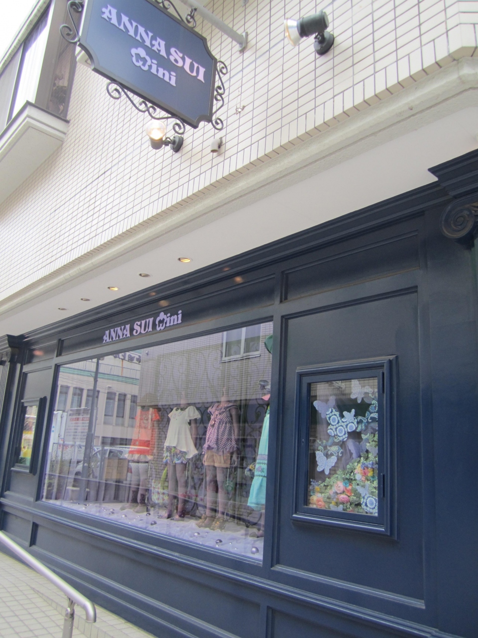 アナスイ ミニ (自由が丘店)は東急自由が丘駅正面口から徒歩5分くらいのところにあるアナスイの子ども服のお店です。値段は決して安くないですが色使いが大人っぽいパープルとかグリーンの人目でアナスイとわかるような素敵な女の子用の子ども服が売っています。