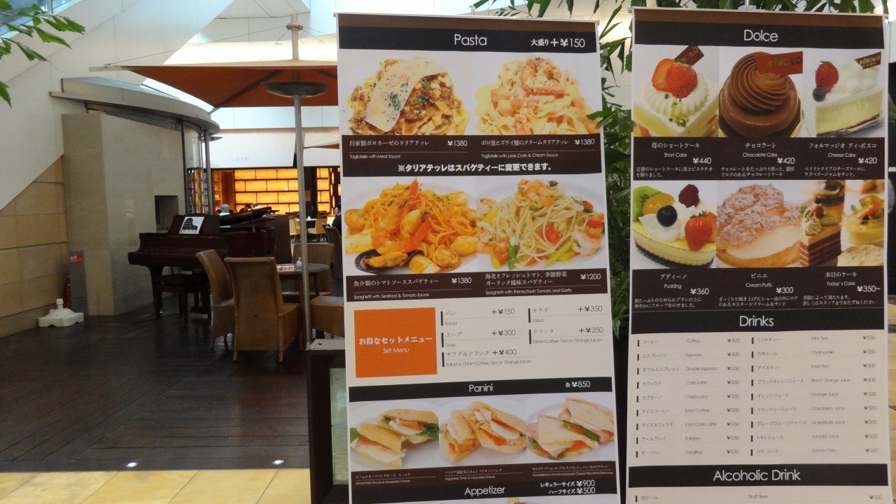 ここのイルピノーロ・カフェさんは、羽田空港国内線第二旅客ターミナルの地下一階、エスカレーターを降りたそばにあります。田園調布にスイーツだけを扱っている同店舗がありますが、ここではその美味しいイタリアンスイーツとさらに、イタリアンの食事ができます。店内も落ち着いたテーブル席が心地良いです。