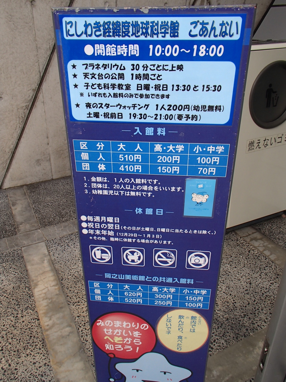 にしわき経緯度地球科学館 「テラ・ドーム」 (にしわきけいいどちきゅうかがくかん てら・どーむ)では、プラネタリウムや子供向けの遊び場等、子供たちにとっては夢のようなスペースを提供してくれていて、夏休みの自由研究の題材としては良いと思います。