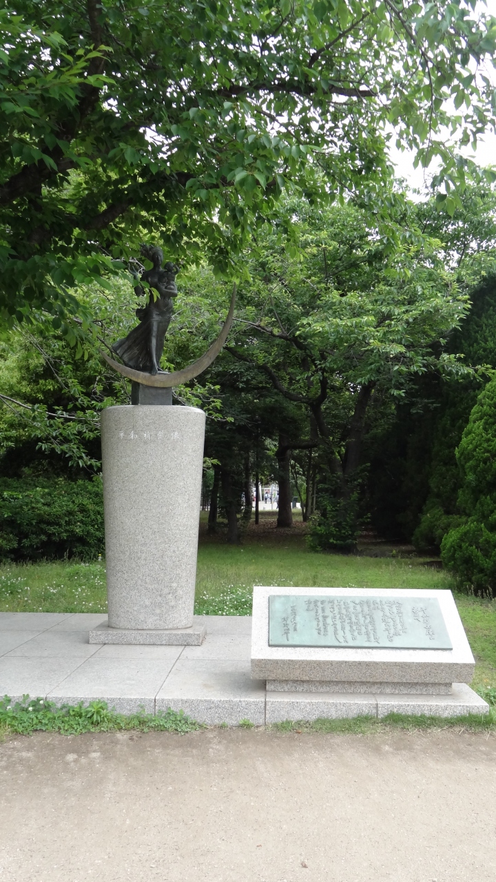 草野心平の詩は、母と子の美しい平和祈念像のすぐそばの石碑に刻んで書かれています。この1978年の詩の最後には「どんな未来がこようとも頬っぺいっぱいふくらましno more Hiroshimaの金のトランペット吹き鳴らせ」と、まるで今の世の中をすでに予言しているようなことが書いてあります。平和を願う気持ちは何があっても失われてはならないと私たちに訴え続けています。