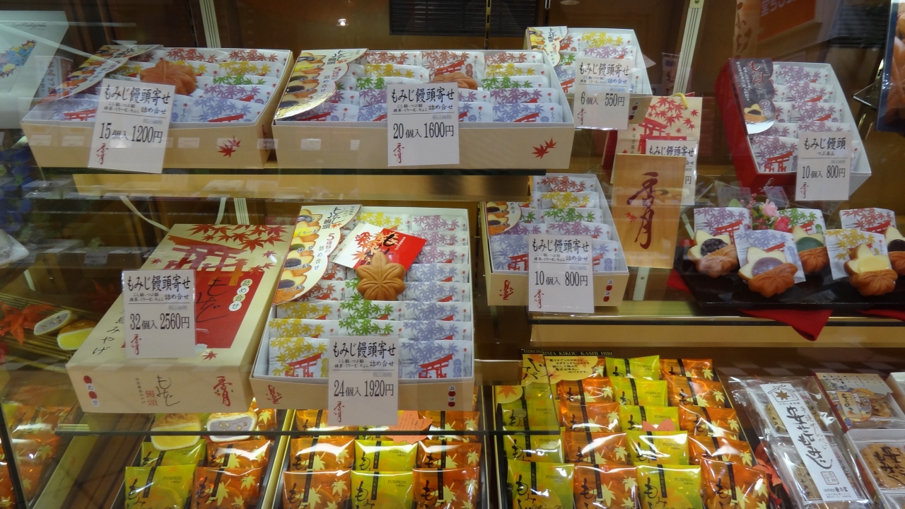 ここの香月さんはJR広島駅に連結している、ASSEという駅ビルの1階にあります。広島に数あるもみじ饅頭のお店の中でも、ここはそのパッケージのあざやかさで知られています。それから、ここが出しているもみじパイもおいしいです。また、野球の広島カープを応援していて、カープもみじ饅頭もだしています。