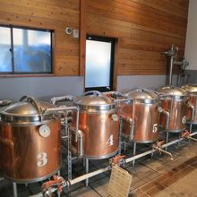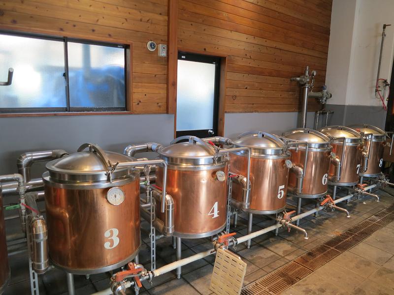 蔵を利用した手造りビール工房には釜が8つあり、1種類のビールに釜を2つ使うので同時進行できるのは4種類のビール造りです。予約は必須。作業はだいたい4時間くらいです。