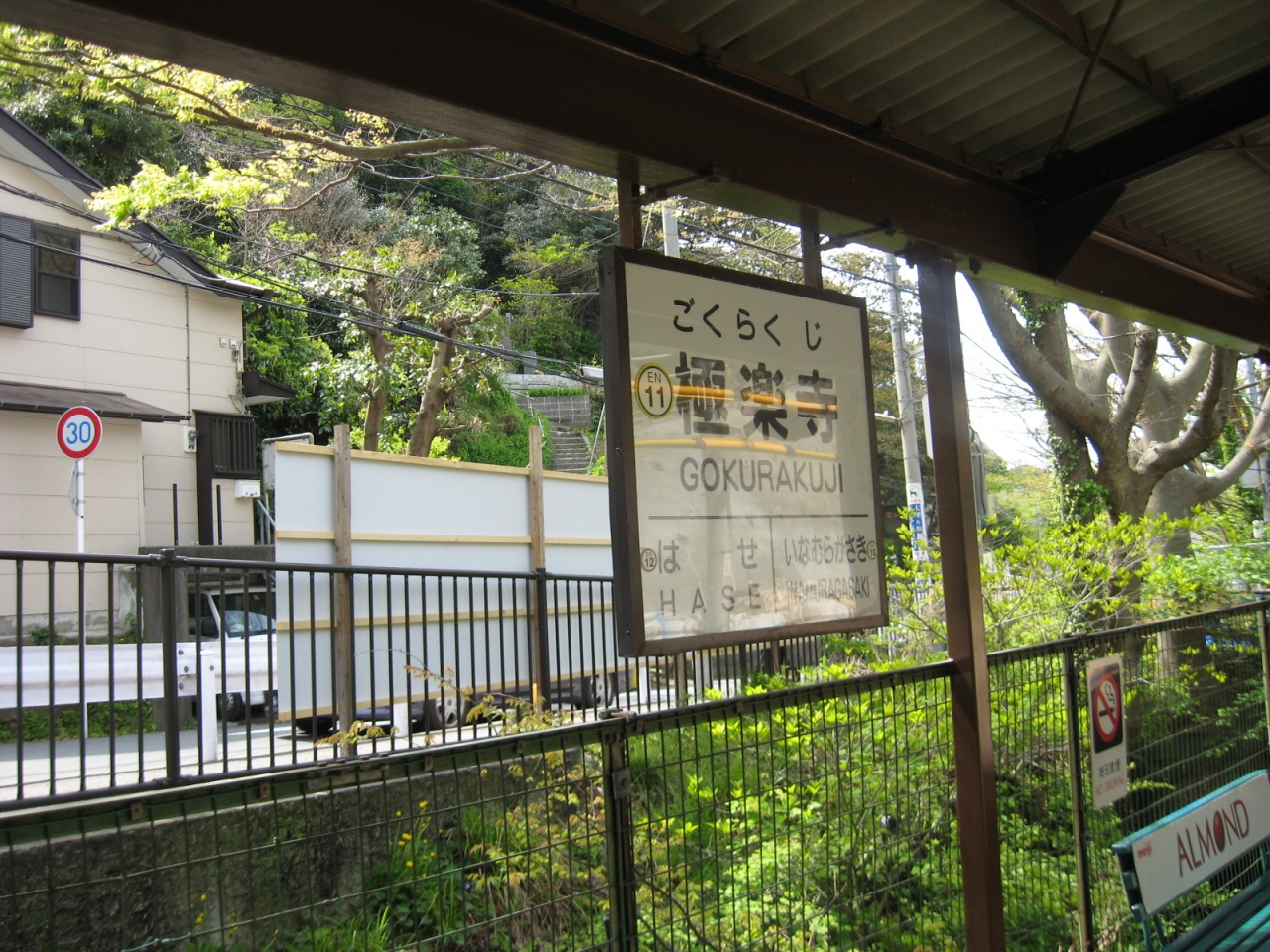 江ノ島電鉄の駅です。関東駅百選の一つ、駅舎は木造で、雰囲気があります。写真を撮りました。極楽寺やあじさいで有名な成就院があります。ぜひ、もう一度来たかったのです。昔のまま、変わっていませんでした。駅入り口のベンチも懐かしかった。
