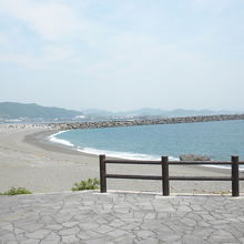丘を越えるには20~30段の階段(スロープあり)を上りスロープを降りる必要があります。丘からは松の木越しに砂浜を一望できます。 砂浜は、海に向かってかなり落ち込んでいっているように感じました。潮がきつく遊泳はできません。