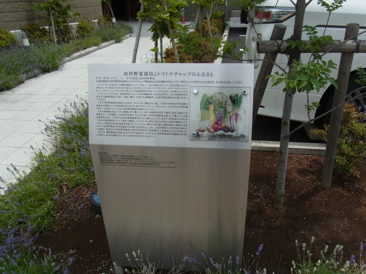 ここはトマトケチャップ発祥の地の赤い石碑もすぐ近くにあり、マンションの敷地のようなところに、この案内板があり、ここが近代的な発祥地である事が分かります。