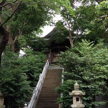 下の参道からは林に覆われていて社殿をみる事は出来ませんが、階段の下までくれば、朱塗りの美しい社殿を見上げる事が出来ます。