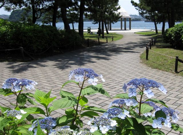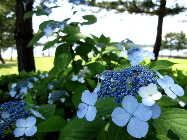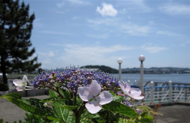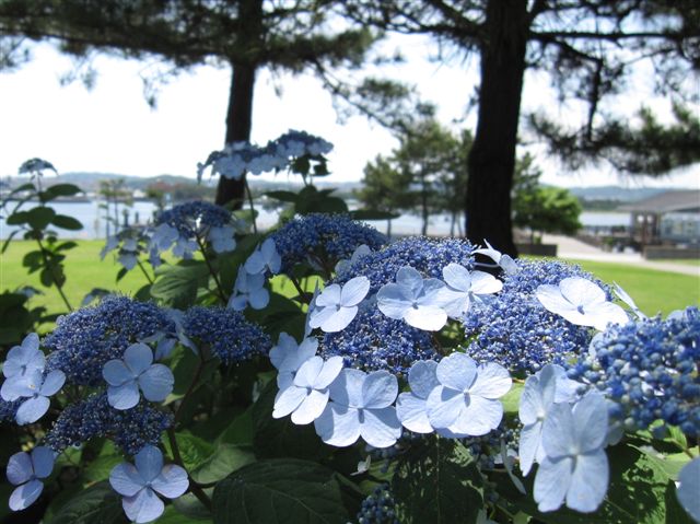 紫陽花が両側に植えられた道や、海のそばに咲く紫陽花等、