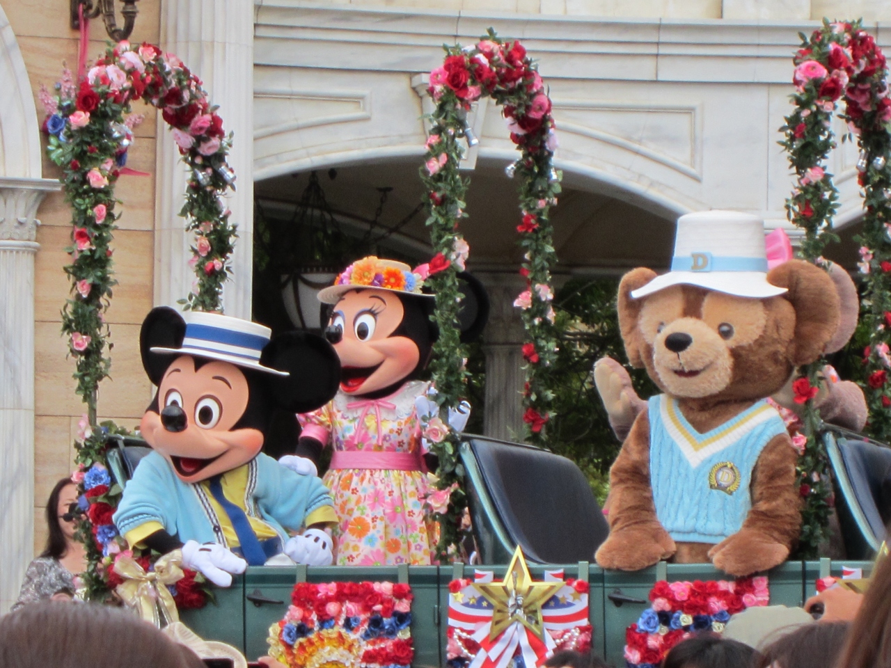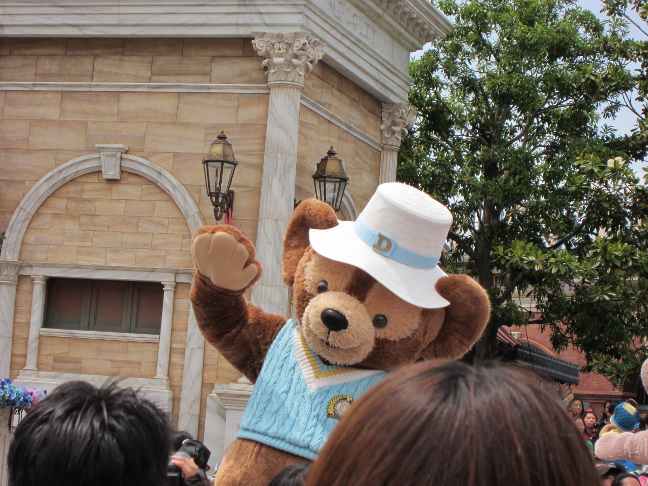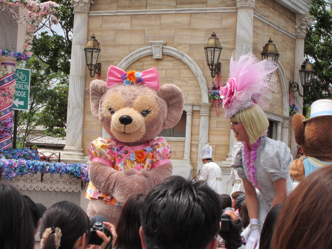 ウオーターフロントパークで行われます。1時間前からシートを敷いて待ちました。ステージはたくさんあってどこからでも見られるのですが、できるだけ中央よりがおすすめです。ミッキーと仲間たちに加え、ダッフィーとシェリーメイも踊ります。すごくかわいくてたまりません。ぜひこの期間に会いに行ってください。