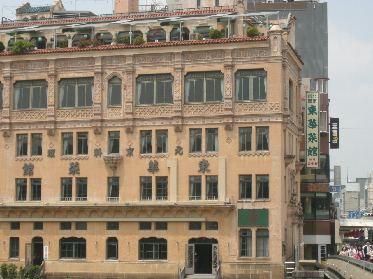 「東華菜館」さんは、四条大橋の西の袂にあります。ヴォーリズ設計1926年竣工で、中には日本最古のエレベータもあり、登録有形文化財である建物は見るだけでも価値があります。家内と二人でランチを頂に訪れました。扉を店員さんが手動で開けるエレベーターで4階の客室へ、高い天井、広い空間、窓からは鴨川や南座、東山が一望できます。ランチはコースもあるのですが、単品も選べるので食べたいものだけ選ぶことにしました。オーダーしたものは、焼き餃子、炒飯、酢豚、海老のチリソース、海鮮スープの5品。焼き餃子は大きなものが8個でパリパリでモチモチ、炒飯は濃い目の味でパラパラ、酢豚は程よい酸味と甘みのタレが絶妙に絡んだ外はカリカリで中はジューシーなお肉、海老のチリソースはプリプリで少しヒリヒリ、どれもボリュームたっぷりで二人でシェアーしながら食べて、二人で6000円ほど、満腹になりました。