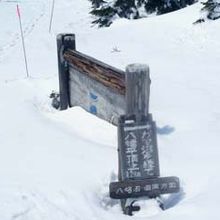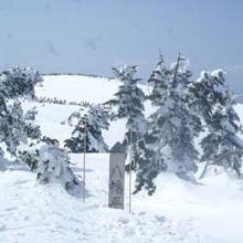 八幡平の最高地点は、1613.3メートルになっていますが、少し南側が少し高い感じで、雪の上と歩いていくと、吹溜りのようなところが最高地点で、地形図の等高線の円の中心のあたりで、雪のない季節には到達できない場所です。