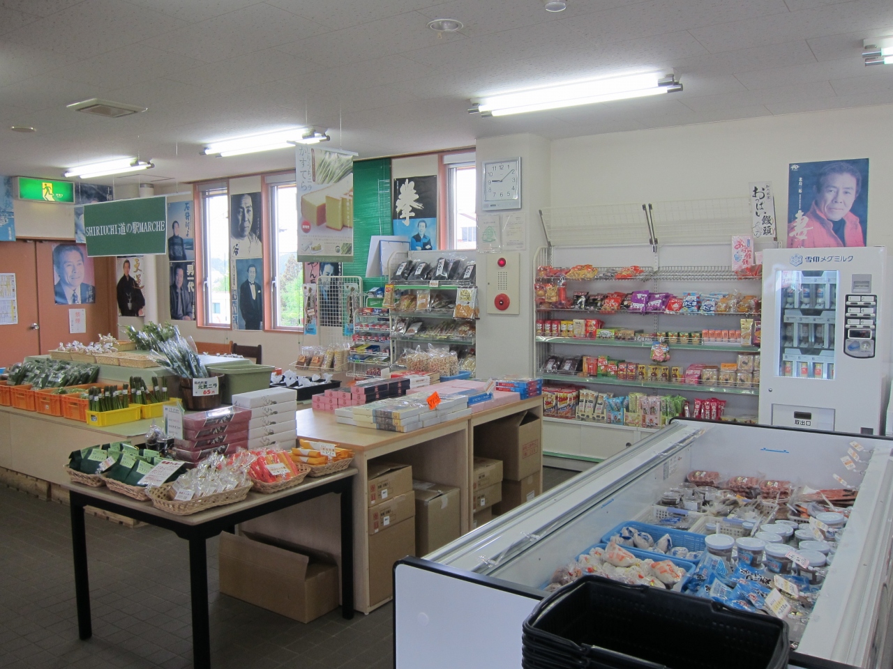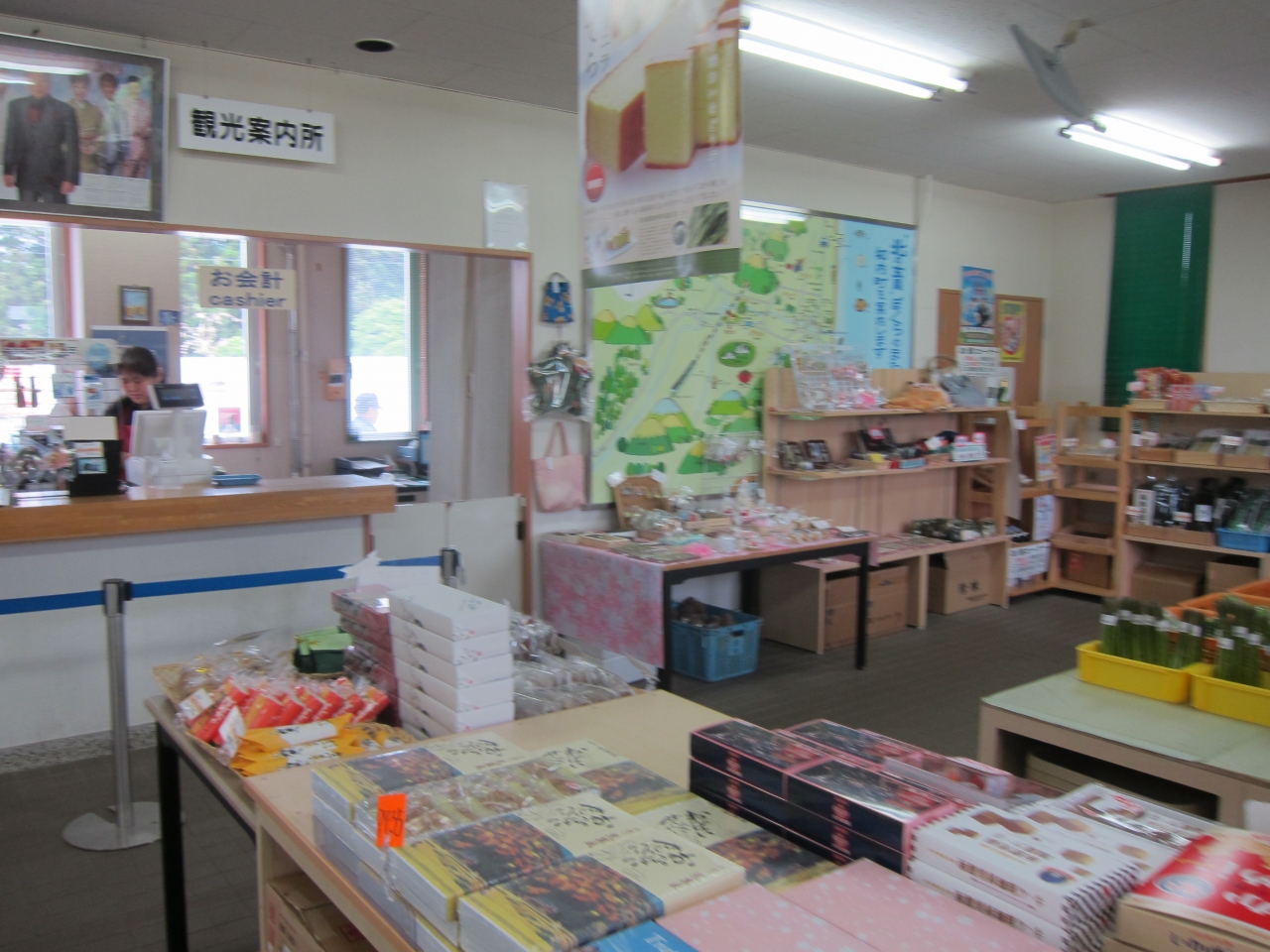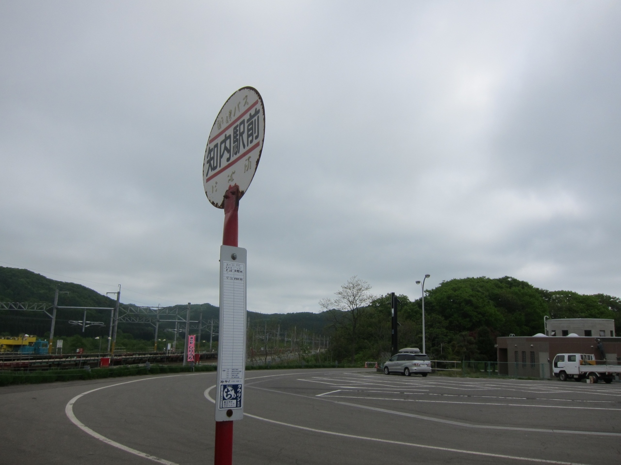 実際の鉄道の駅であるJR津軽海峡線、知内駅と併設しています。昔は道の駅で鉄道のきっぷも販売していたようですが、今は鉄道駅とは縁を切って関係ないといった感じです。そもそもJR知内駅は1日に特急が二往復しか停まりませんし、2015年度に新幹線ができたら知内駅はなくなってしまうかもしれません。さて、道の駅の方ですが、こちらも貧弱な感じがします。知内自体が、にらなど野菜が特産でほかに大したものが無いので、道の駅も観光案内所のほか、お土産コーナーに野菜や海産物、お菓子が多少並ぶ程度でした。しかしそれでも地元にしかない「かみなりせんべい」や当地の姥杉をモチーフにしたお菓子などがありました。付近で発掘されたストーンサークルなどの遺跡を模したトイレがあり、便利ですが、休憩にはやはり隣(福島町)の隣の松前の道の駅まで行った方がよいと思います。