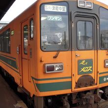 この鉄道は、「ストーブ列車」や「風鈴列車」など季節の風情に合わせた列車が走ることで有名ですが、訪問日は「走れメロス号」でした。