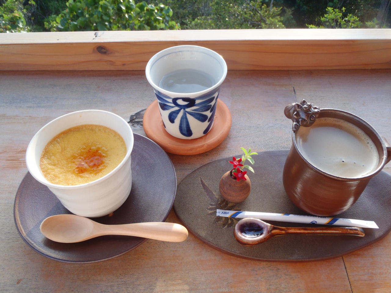 何回も沖縄へ行っているので、カフェでのんびりと過ごしたくて『土花土花』さんを見つけました。丘の上にあるため、テラス席からは海全体を見ることができて最高です♪