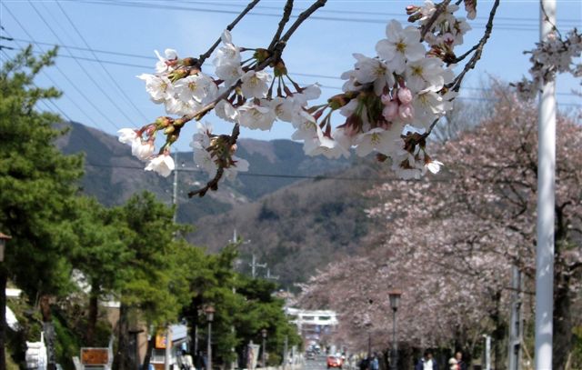 桜並木の続く宝登山神社参道を歩き、神社を通り越し