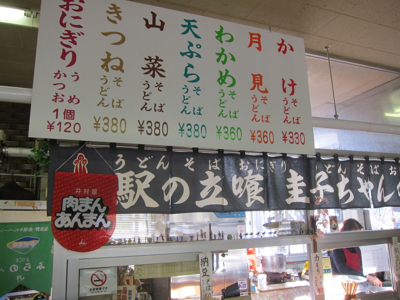 富良野駅の中に入っている立ち食いそばの店です。待合室にキオスクと一緒に入っています。富良野駅は列車の本数が結構少ないので、待ち合わせ時間がよくできてしまいます。駅から500mほど行くと富良野マルシェがあってスイーツなど、いろいろなおいしそうな物が食べられるのですが、面倒くさかったり、塩味系が欲しかったりと、ついつい「圭子ちゃん」を使ってしまいます。そば、うどんをてんぷら、月見、山菜、きつね等々でいただくことができます。おにぎりもあります。テレビもついている待合室の椅子にゆったり座って食べながら、列車を待ちましょう。