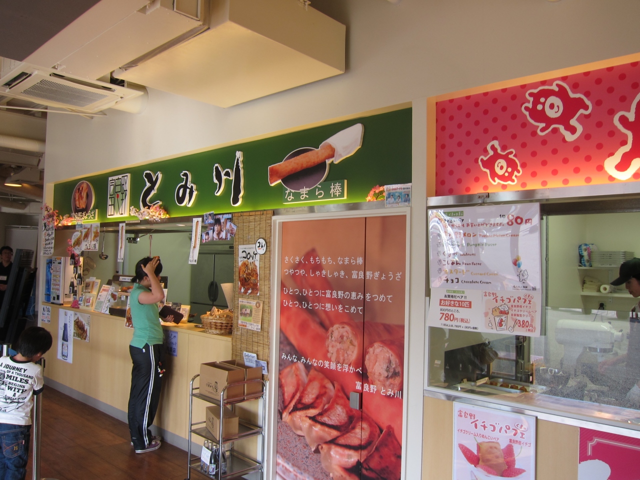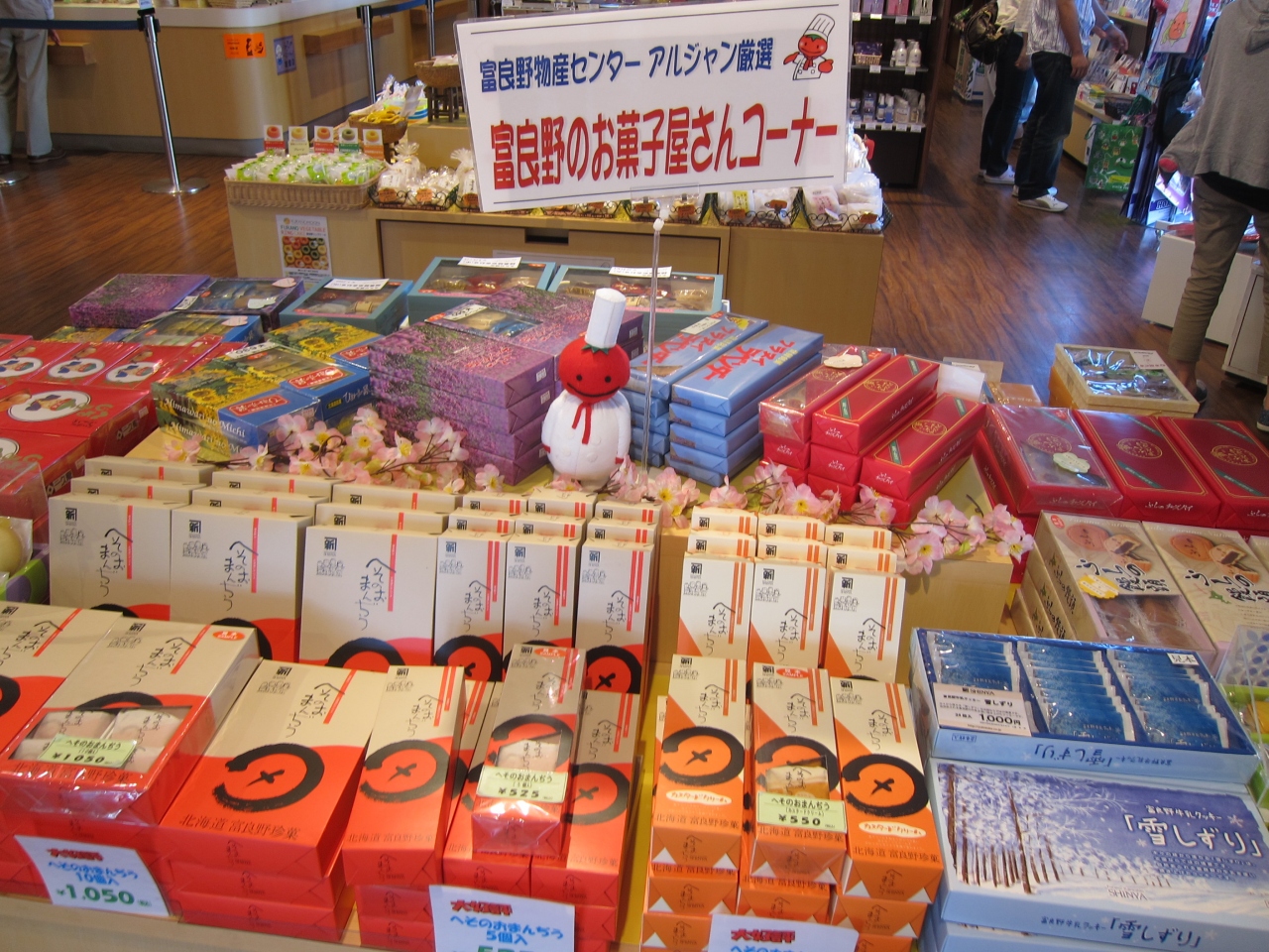 地産地消の地元ブランドの農産物、スイーツの店やカフェ、富良野のお土産など、富良野のグルメ、お土産を調達するには便利なところです。個人的にはソフトクリームと手作りまんじゅうのお店、「ばす すとっぷ」のふらのサンデーが気になりました(気温26度で暑かったので)。お土産コーナーはワイン、ワインチョコ、ファーム富田コーナー、「雪しずり」などなどです。アクセスは国道38号線沿いの富良野中心部にあり、100台近く止まれる無料の駐車場があるほか、JR富良野駅からは正面の道1本で500mほどです。