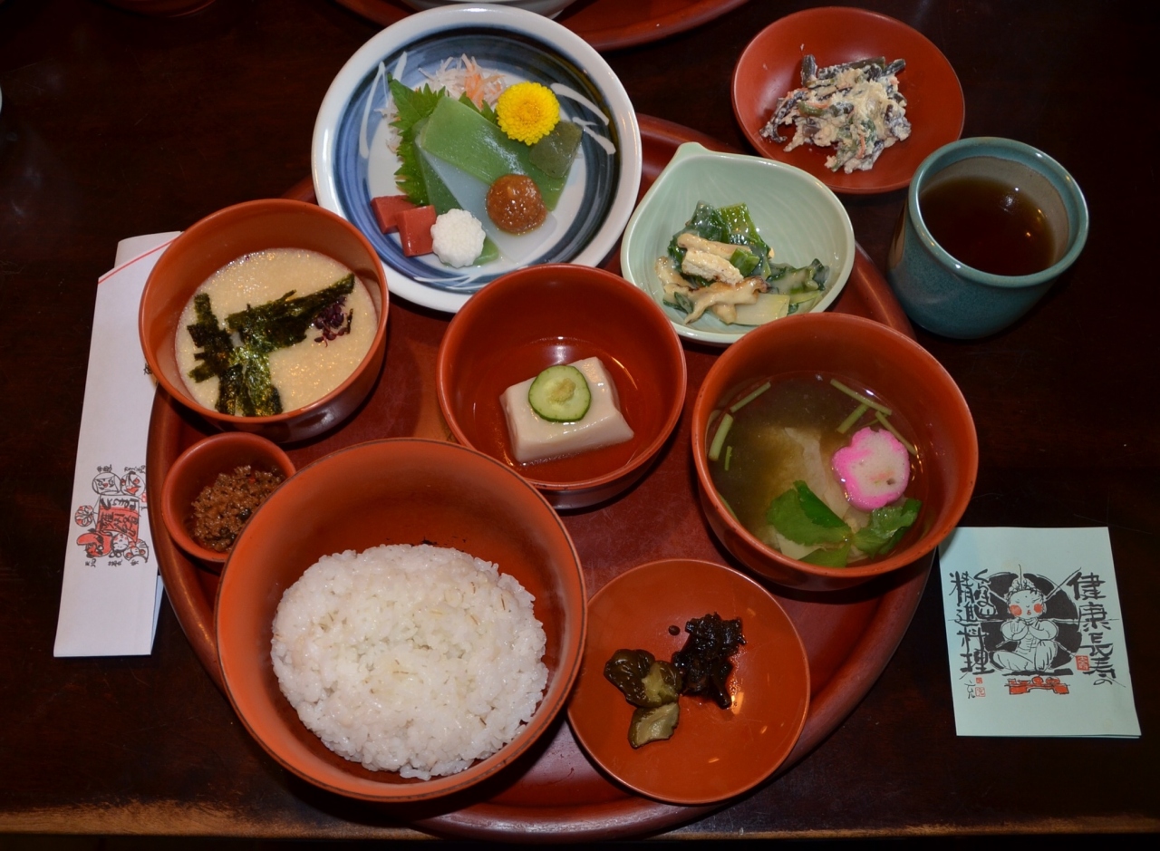 我々は鞍馬寺の麓にあるケーブルカーの駅の近くにある雍州路という精進料理の店で食事を取った。きのこや大豆や山菜を材料にしていながらなかなかの美味で、お勧めである。この店にしばらく駐車させてもらって、ケーブルカーで参拝した。参道はすでに山の中であり、森の香りが心地よく、展望台からは山の稜線が見渡せる。なお、国宝の毘沙門天立像、吉祥天立像、童子立像などの仏像は、鞍馬山霊宝殿の3階にあり必見である。