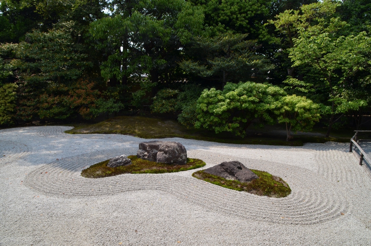建仁寺は京都最古の禅寺であり、臨済宗の大本山で、開山は栄西禅師、鎌倉時代建仁2年(1202年)の開創、などとパンフレットにある。禅寺らしく石庭を眺めながら、縁側で瞑想することもできる。