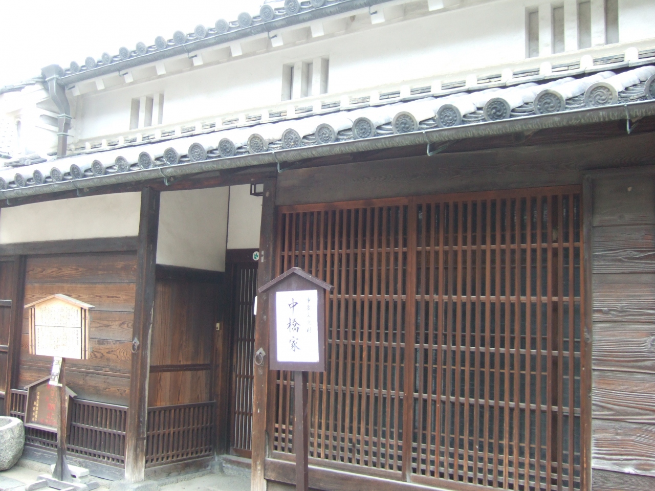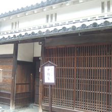 切妻造、本瓦葺、平入りで、道に面した側面は白壁で綺麗に塗り替えていて