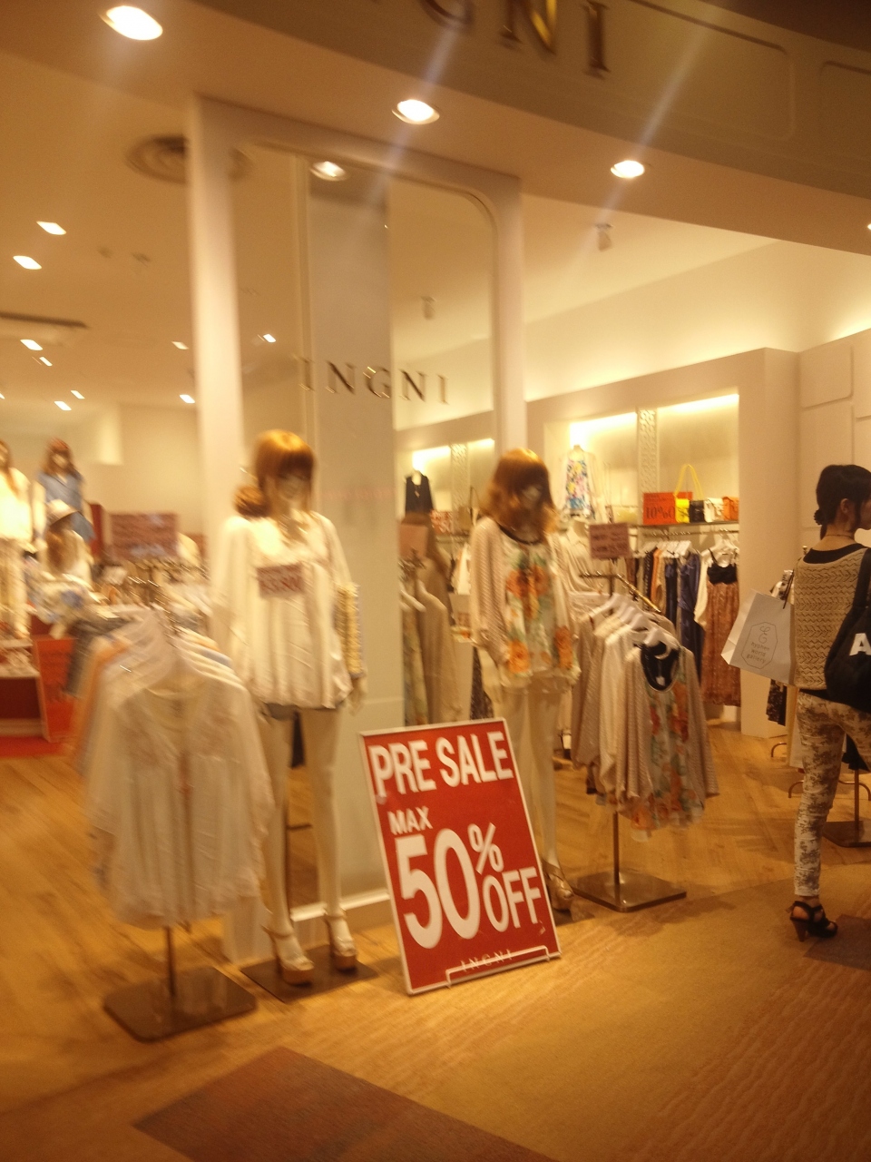 今回は、他のショップが割引セールを余りやってないのに最大50パーセントオフをやっていた。なんか毎度セールをやってる感じがいなめない。ショップは、チョット大人の感じのレディスショップで服飾雑貨がメインです。服の他はバックなども売ってます。