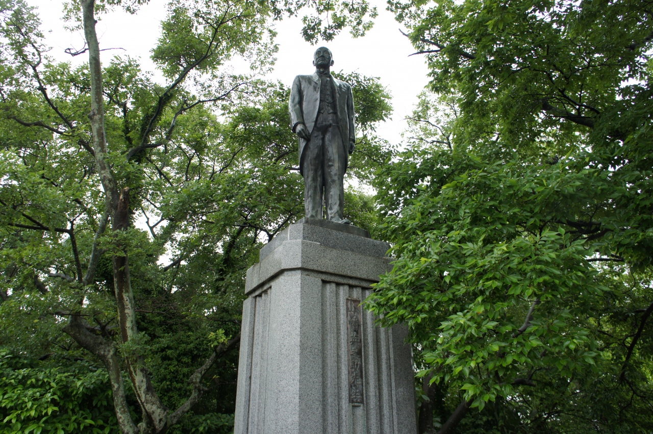 中津城公園の一角の石垣を登った場所に、あまり目立ちませんが、小幡英之介の像があります。小幡英之介は、日本の歯科医師免許第1号を取得、西洋歯科医学に基づく日本初の歯科医師と言われます。慶應義塾塾長となった小幡篤次郎の従弟でもあるようです。