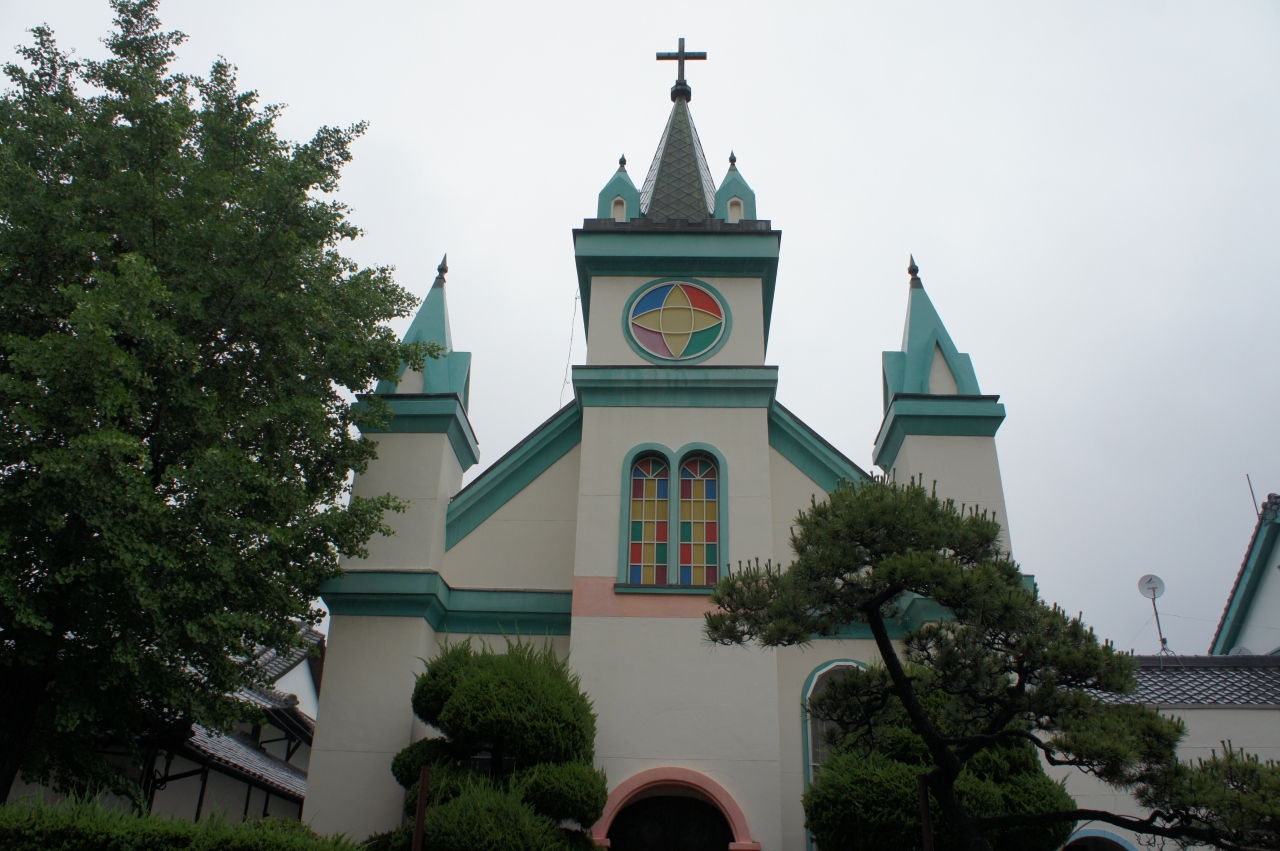 中津カトリック教会は、明治20年に設立。現在の聖堂は昭和13年に建てられたもので、その後、昭和57年にステンドグラスが入れられています。その48枚のステンドグラスには、「中津の殉教者」や「細川ガラシャの信仰」などがあって見たかったのですが、拝観時間は月曜日から土曜日の9:00~16:00。時間に間に合わず、外観を確認するだけとなってしまいました。