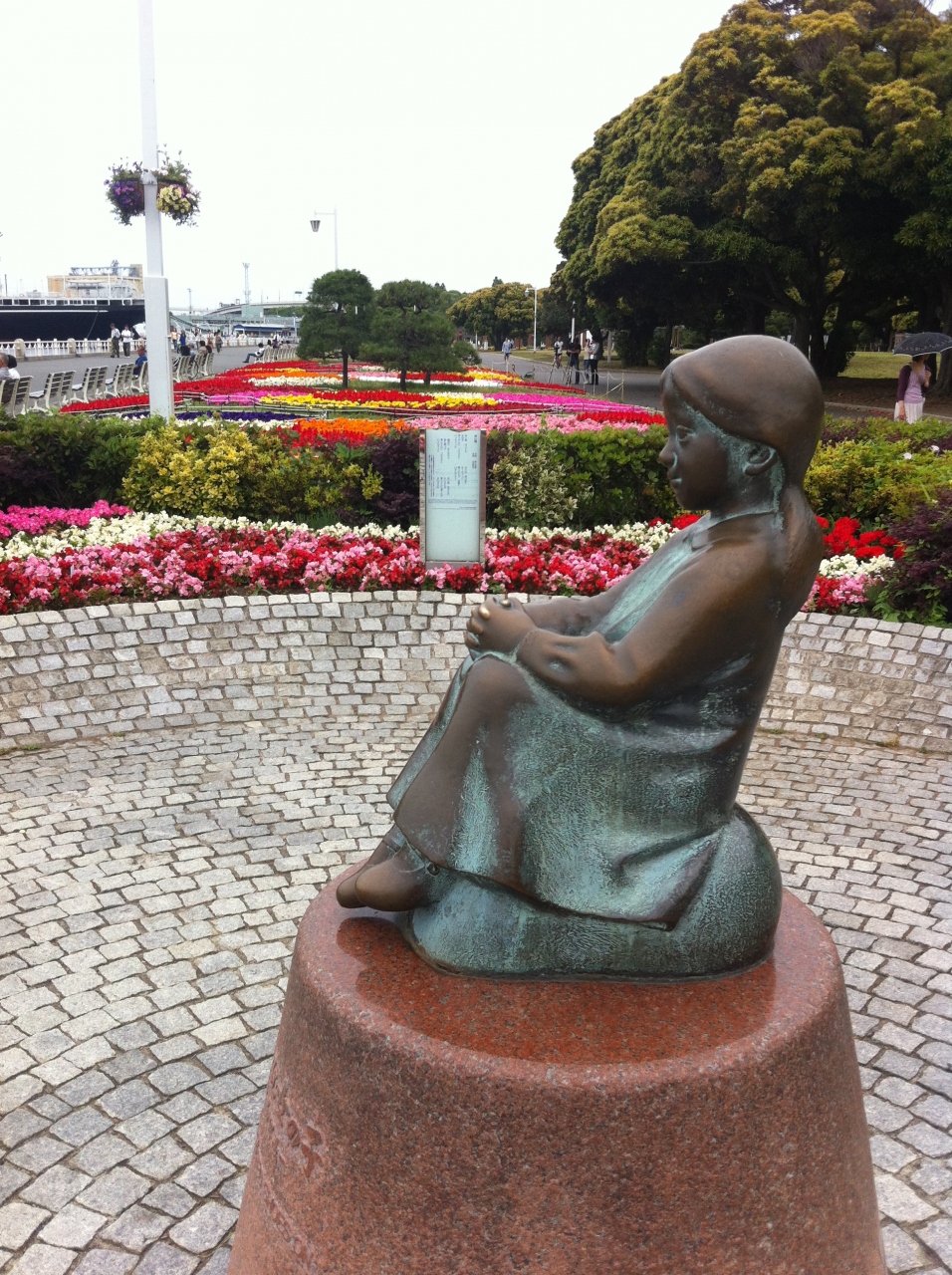 山下公園の大さん橋方面の花壇と花壇の間にチョこんと座っています。