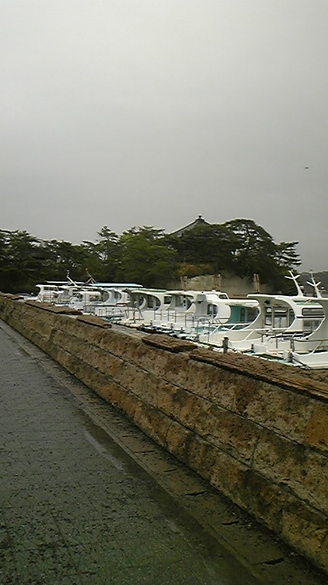 JR松島海岸駅から歩いて12~13分ぐらい。松島のシンボル的なお堂である五大堂は、海岸から少し離れた小島にあり、そこへは短い朱塗りの橋を渡って行きます。静かな海を背景に、何本かの松の木に囲まれている五大堂には風情を感じました。