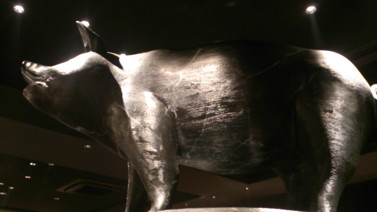 暗めの店内はおしゃれな雰囲気で、店内には店名にもなってる豚のモチーフがたくさんありました。席の造りも面白いので、人数によって案内される席が違います。