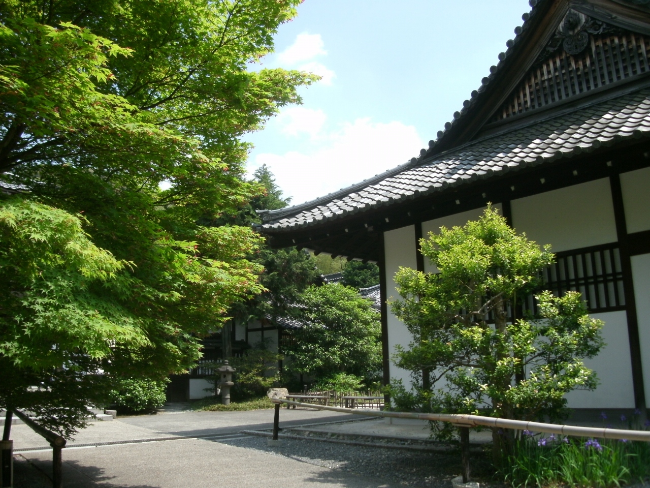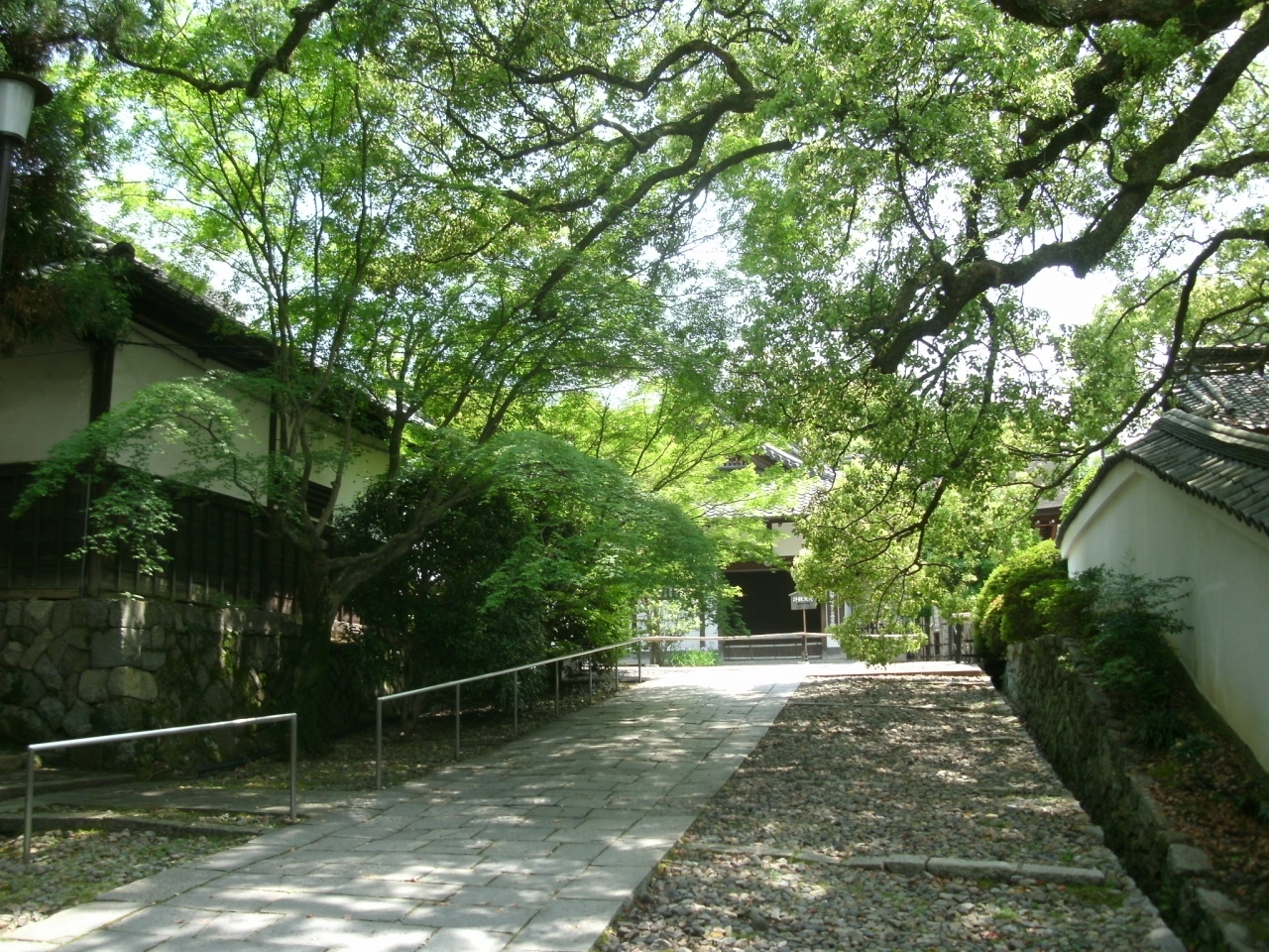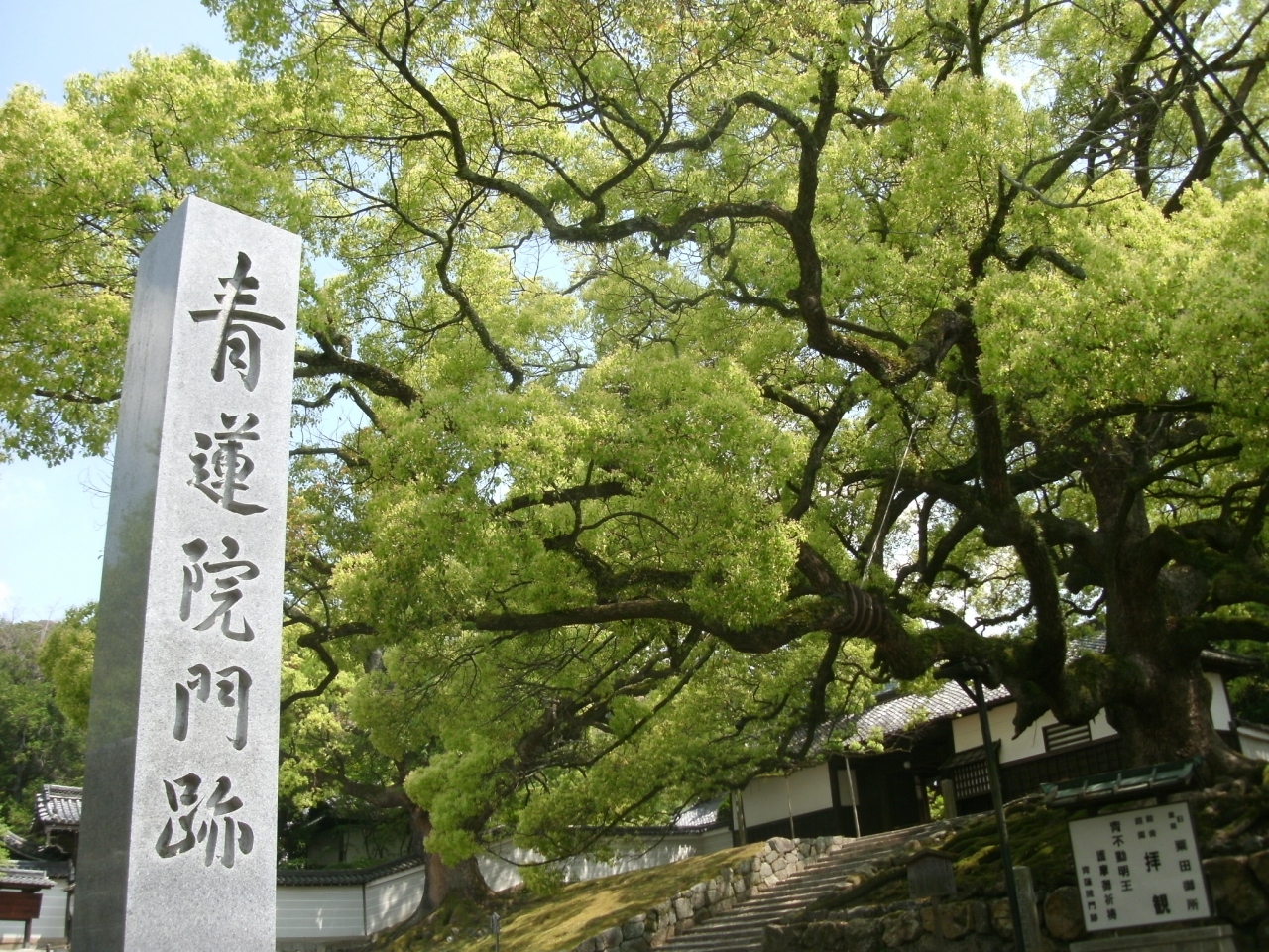「青蓮院」さんは、三条通の“三条神宮道”の交差点を南に200mほど行った所に鎮座されています。平安末期に建てられた天台宗の寺で、延暦寺の三門跡の一つです。日本三不動の一つで、国宝である“宵不動”と呼ばれる不動明王画像があることで有名です。小堀遠州の作と伝えられている回遊式庭園もすばらしい。門前には京都市の天然記念物に指定されている、親鸞の手植えだと言われている樹齢800年の楠の大木があります。