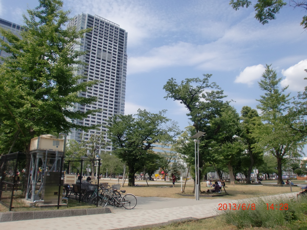 休日は家族連れでにぎわって人も多めでした。すぐ隣にオリナスというショッピングセンターがあるし、まわりにビルも建っているので、都会の公園っていう感じです。