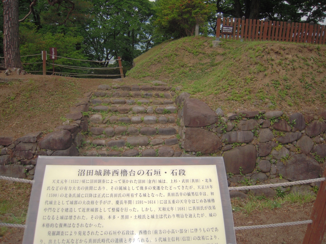 沼田城址は真田氏ゆかりのお城で広大な敷地に櫓跡の石垣の一部やお堀跡の一部がありますが残念ながらあまり遺構は残ってませんでした。ただし、本丸、三の丸、等の説明文などがよく整備されており、立地も崖の上にあり城跡からの眺めは非常に良かったです。