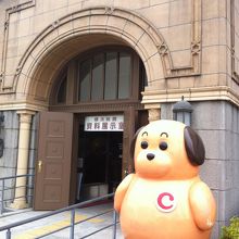 見学できる資料展示室入口のはマスコットの