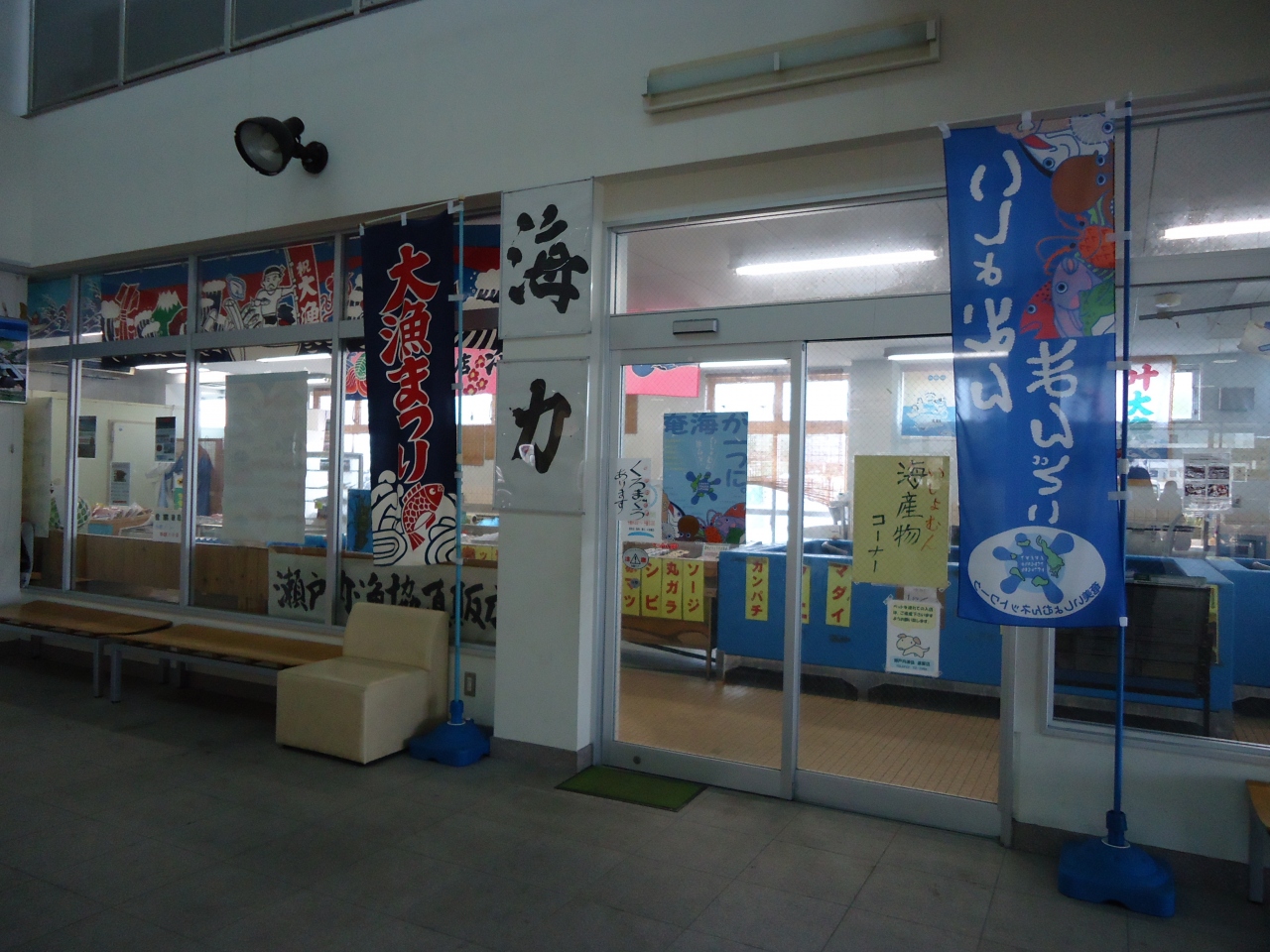 地元で水揚げされるクロマグロなどの新鮮な魚介類や特産品販売、総合観光案内所があります。
