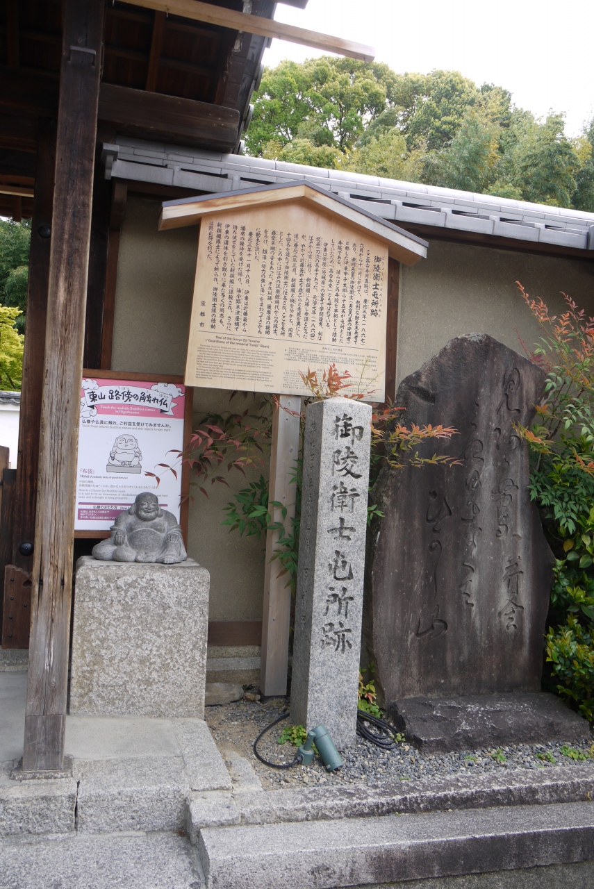 京都祇園。八坂神社と清水寺を結ぶねねの道の途中にあります。高台寺、月真院は秀吉の正室、高台院(ねねさん)ゆかりのお寺。そして時代が流れこの地に新撰組を脱退した伊東甲子太郎一派が御陵衛士として駐屯。石碑がその事実を残してくれています。この石碑を見ると、その歴史に思いを寄せることができます。