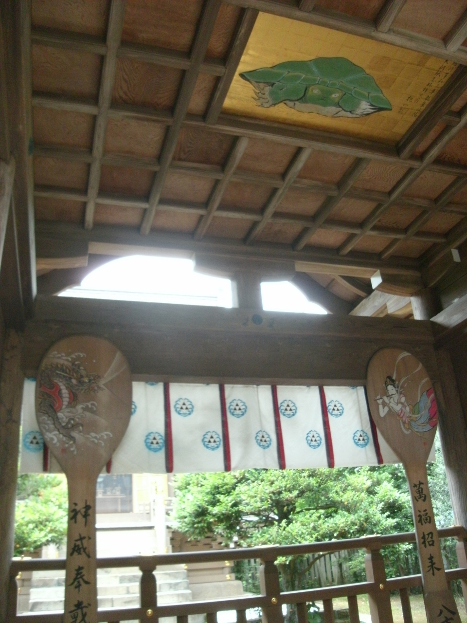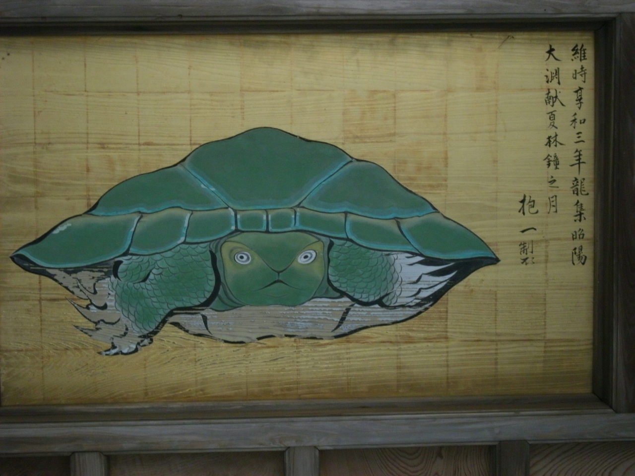 観光的には拝殿の天井に「八方睨みの亀」が。見上げるとどこからでも睨まれてます。