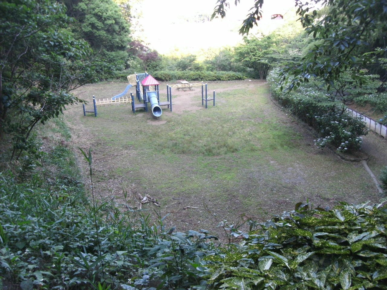 戸塚町の公園です。といっても杉木立・竹薮・古木の森山に散策路を整備(舗装・階段)、空地に子供遊具を設置した感じです。入口わかりずらいうえガイド板(よくある公園の案内図)が見当たりませんでした。地元近隣者でないと迷います。そう、ここは浅間神社の裏手で境内と繋がっていました。