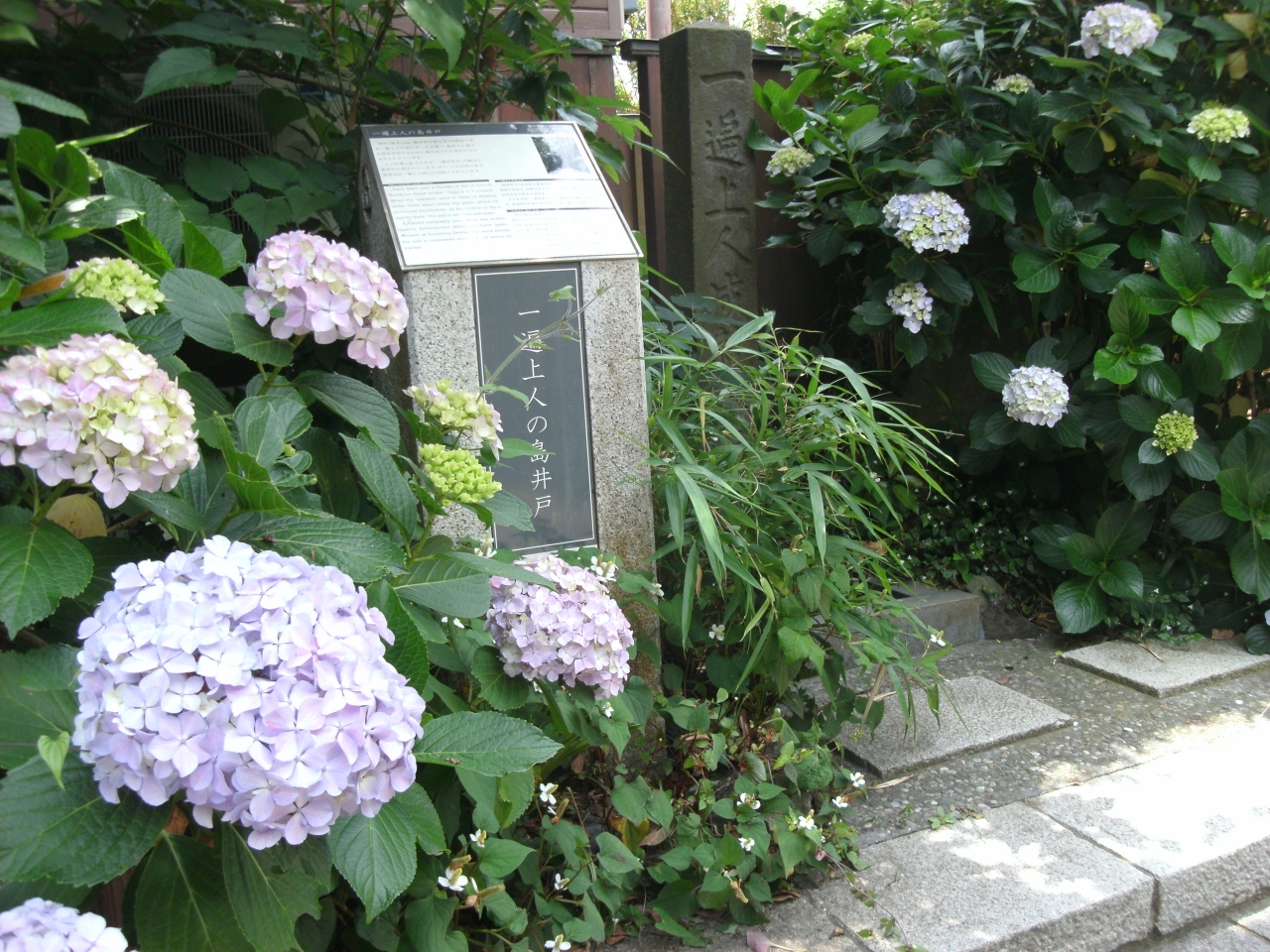 振り向いて!・・史跡井戸です。今は紫陽花ですが・・